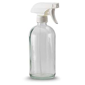 Glass spray bottle w/ clear spray nozzle.